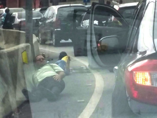 Imagens e um áudio enviados por um policial mostram o desespero de motoristas que passavam pela Estrada Grajaú-Jacarepaguá na tarde de quinta-feira (14), durante tiroteio no qual um policial da UPP do Lins ficou ferido. O RJTV mostrou motoristas saindo dos carros, abaixados e se protegendo nas muretas da estrada.
